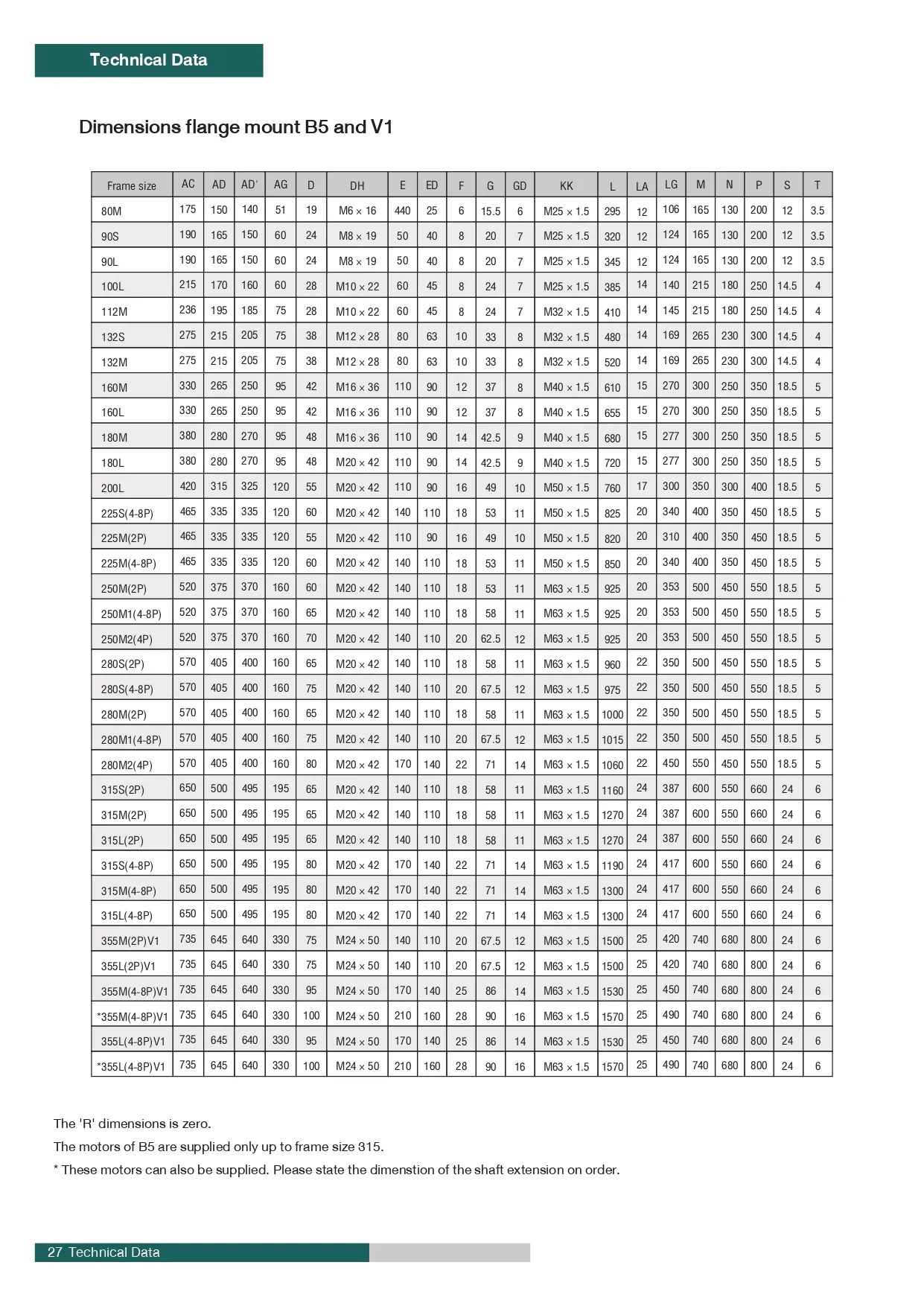 Frame Size Standard: IEC 71 – 355
