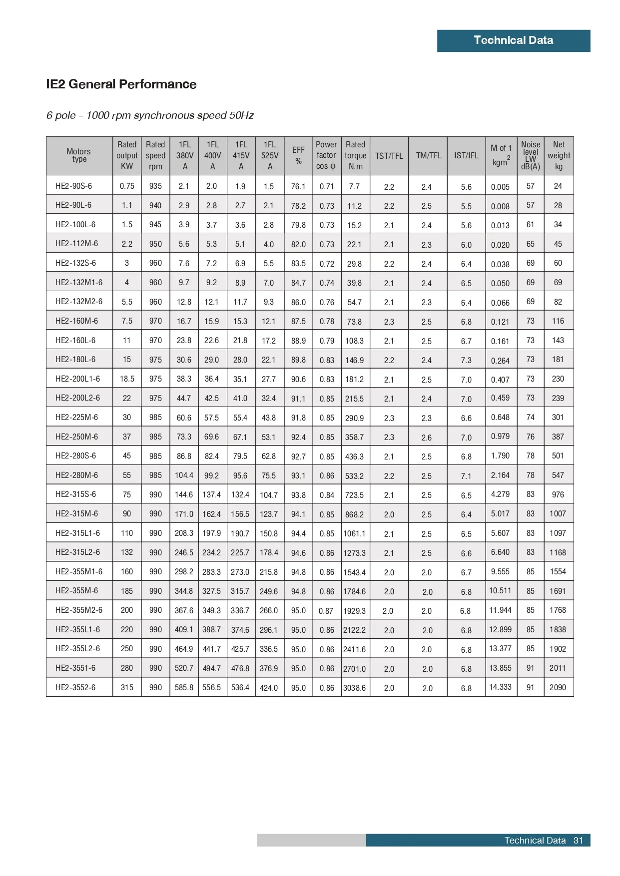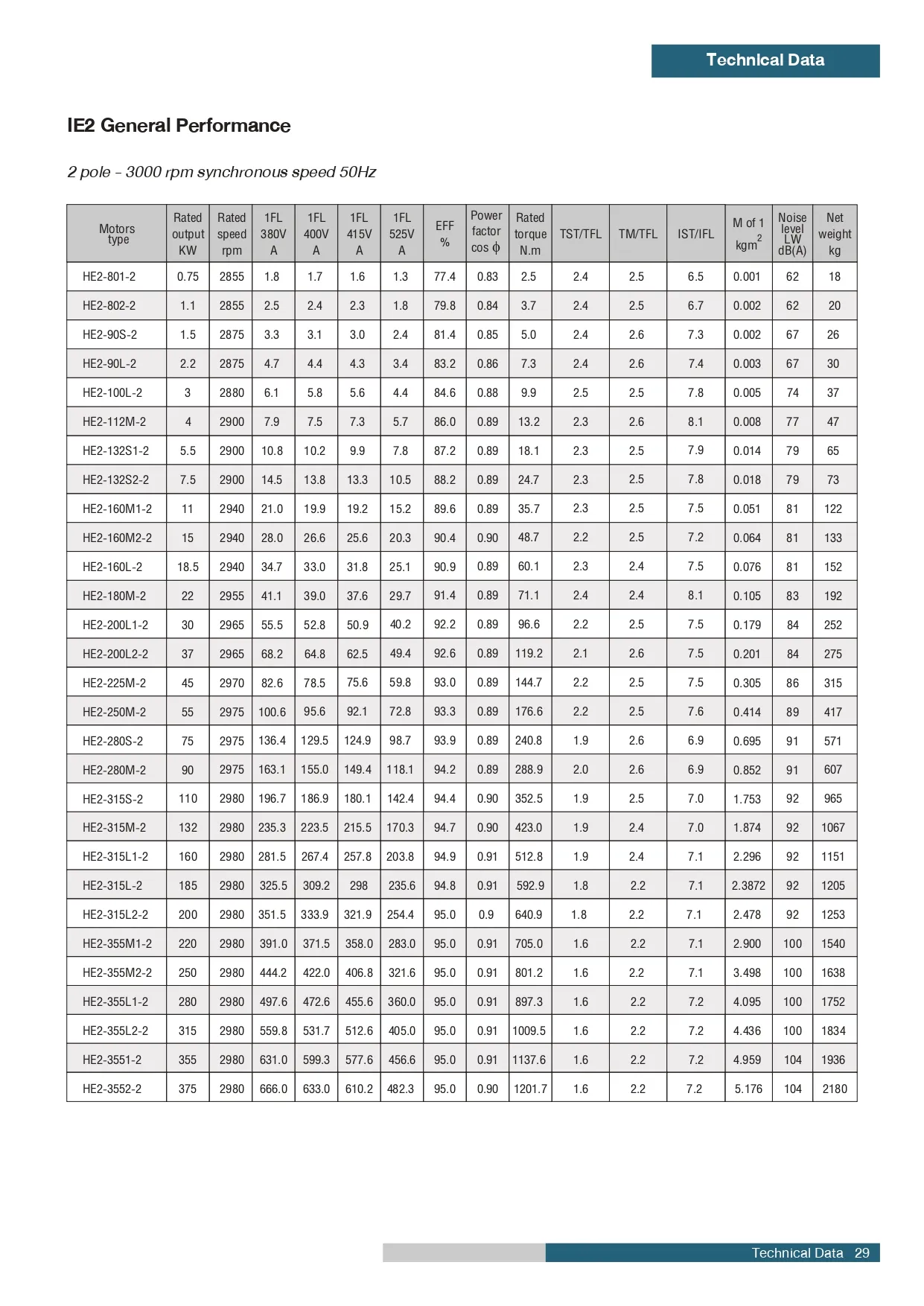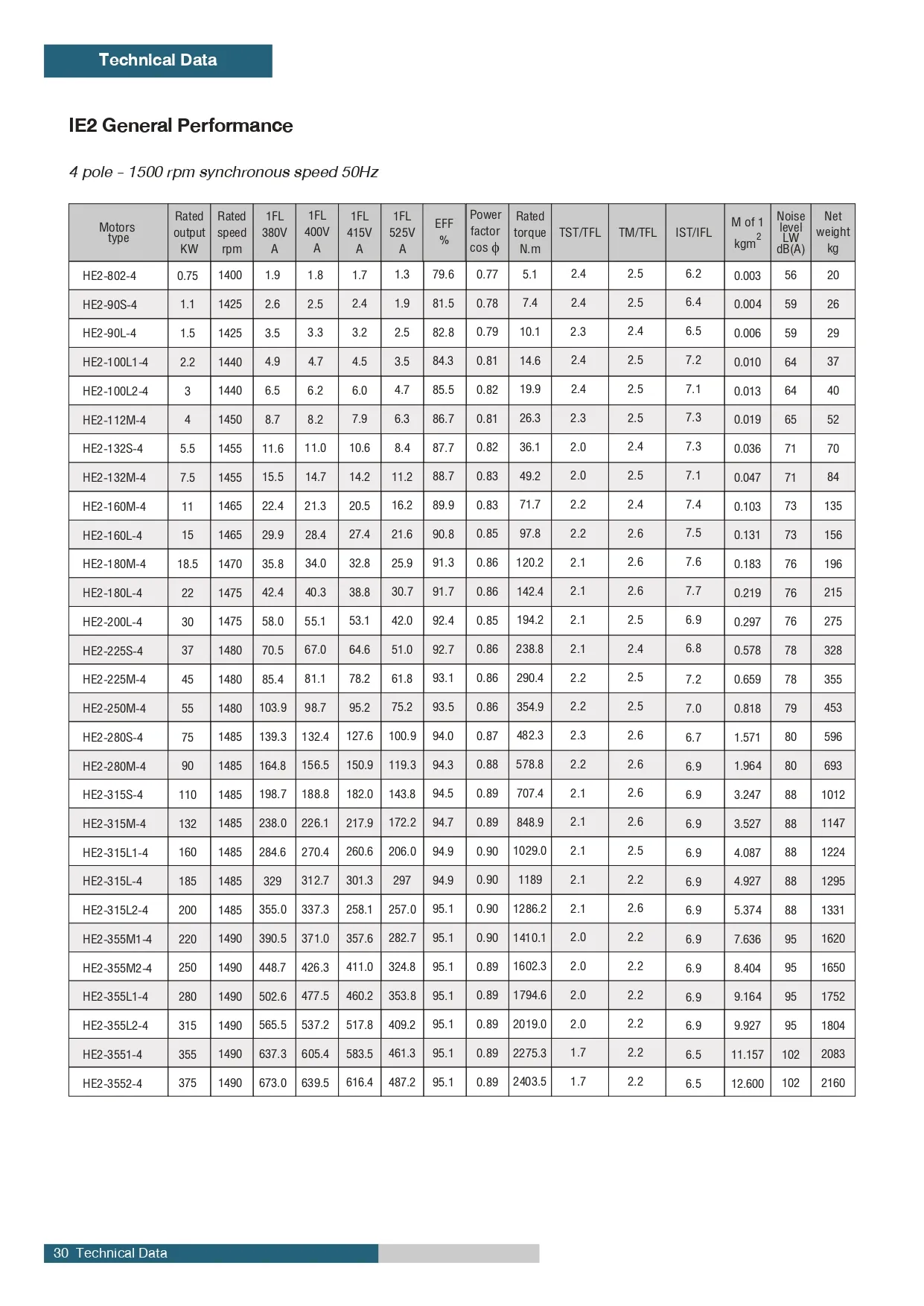 มอเตอร์ไฟฟ้า Hascon Motor – IE2 Series เป็นมอเตอร์อุตสาหกรรมประสิทธิภาพสูงตามมาตรฐาน IEC IE2 Efficiency Class ใช้ได้กับงานทั่วไป เช่น ปั๊มน้ำ, พัดลมอุตสาหกรรม, เกียร์ส่งกำลัง และคอมเพรสเซอร์ มีขนาดกำลังตั้งแต่ 0.75–375 kW, เฟรมมาตรฐาน IEC 71–355, และมีให้เลือกทั้ง 2, 4, 6 poles