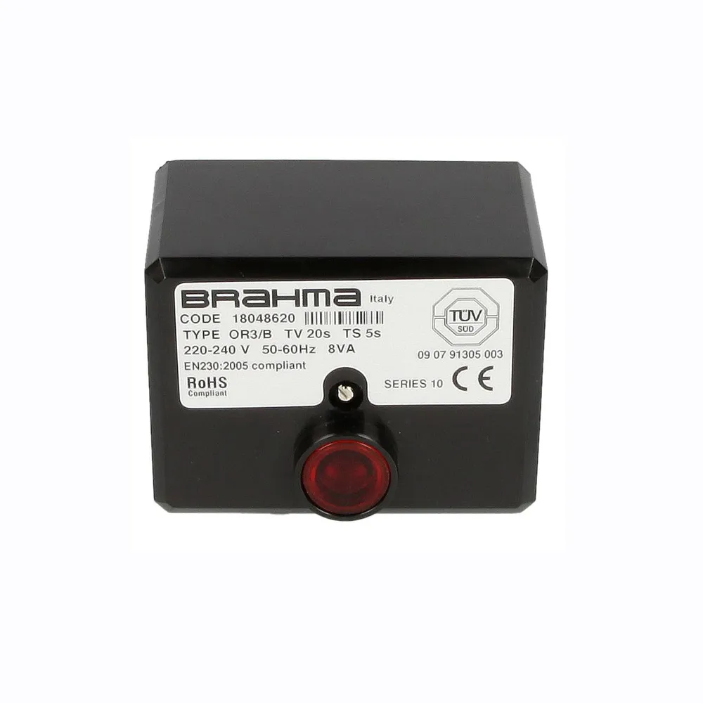 Brahma Burner Control – OR Series เป็น automatic oil burner control box สำหรับหัวเผาน้ำมันเชื้อเพลิงแบบ monoblock ใช้แรงดันไฟฟ้า 230V AC, 50/60Hz ทำหน้าที่ควบคุมการจุดไฟ, ตรวจสอบเปลวไฟ และตัดการจ่ายเชื้อเพลิงทันทีเมื่อเกิด flame failure เหมาะสำหรับ boilers, furnaces, hot air generators และ steam boilers
