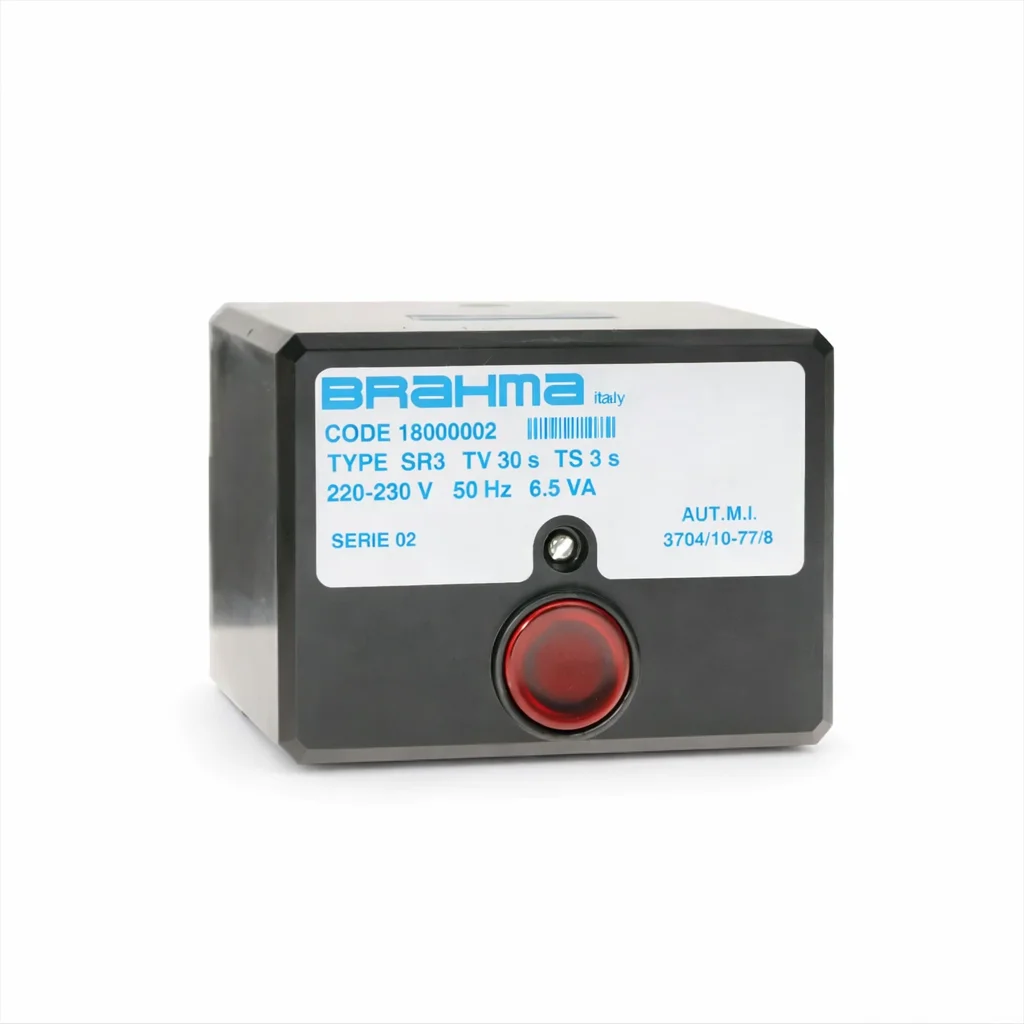 Brahma Burner Control – SR Series เป็น Safety Relay สำหรับหัวเผาแก๊ส ที่ทำหน้าที่ควบคุมการจุดระเบิดและตรวจสอบเปลวไฟ เพื่อความปลอดภัยในการทำงานของระบบเผาไหม้ เหมาะสำหรับ Boilers และ Industrial Burners ที่ต้องการความเชื่อถือได้สูง โดยรุ่น SR3 รองรับกำลังหัวเผาสูงสุด ~120 kW