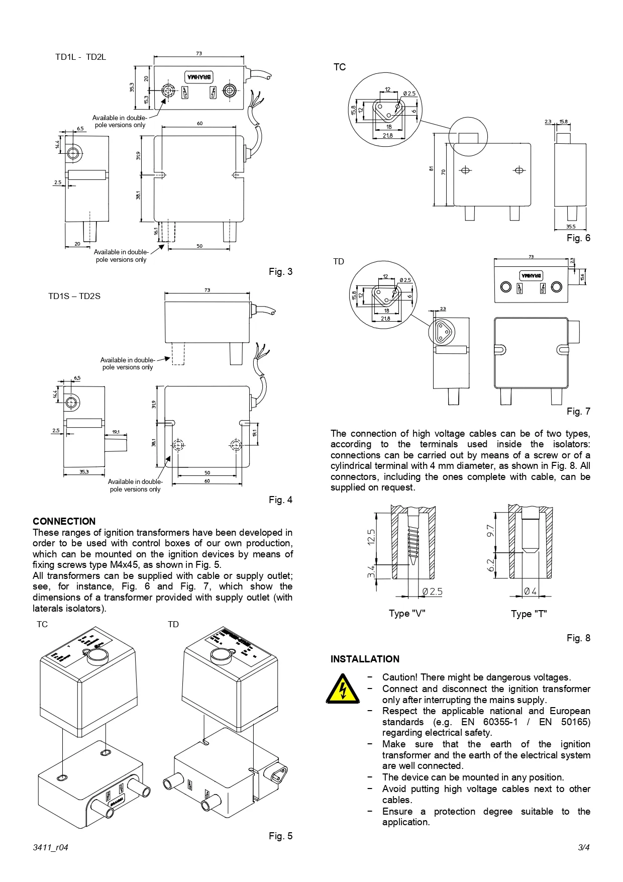 BRAHMA Transformer TD Series (Ignition Transformers – High Voltage for Burner Systems) ขนาดกะทัดรัด ใช้สำหรับหัวเผาแก๊สและน้ำมัน (ทั้งเบาและหนัก) ในงานบ้านและอุตสาหกรรม ออกแบบมาเพื่อสร้างแรงดันสูง สำหรับการจุดระเบิด โดยมีรุ่นย่อยที่รองรับแรงดันไฟฟ้าอินพุตต่าง ๆ