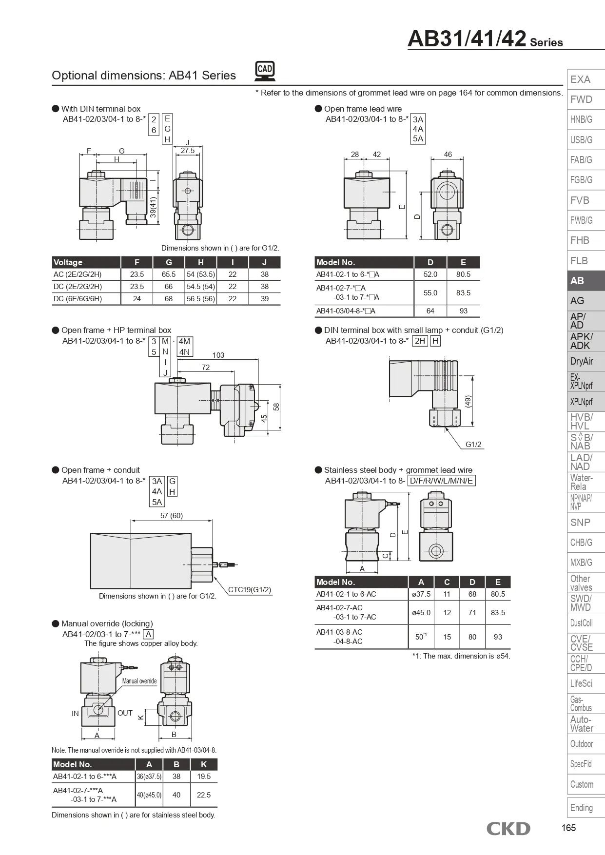 CKD Solenoid Valve – AB41 Series เป็นโซลินอยด์วาล์วแบบ Direct‑acting 2‑port valve ที่ออกแบบมาให้ใช้งานกับ ของไหลหลายประเภท (air, gas, water, light oil) มีตัวเลือกวัสดุ, ขนาด orifice และคอยล์หลากหลาย เหมาะสำหรับงาน boilers, furnaces, process lines และระบบอุตสาหกรรมทั่วไป