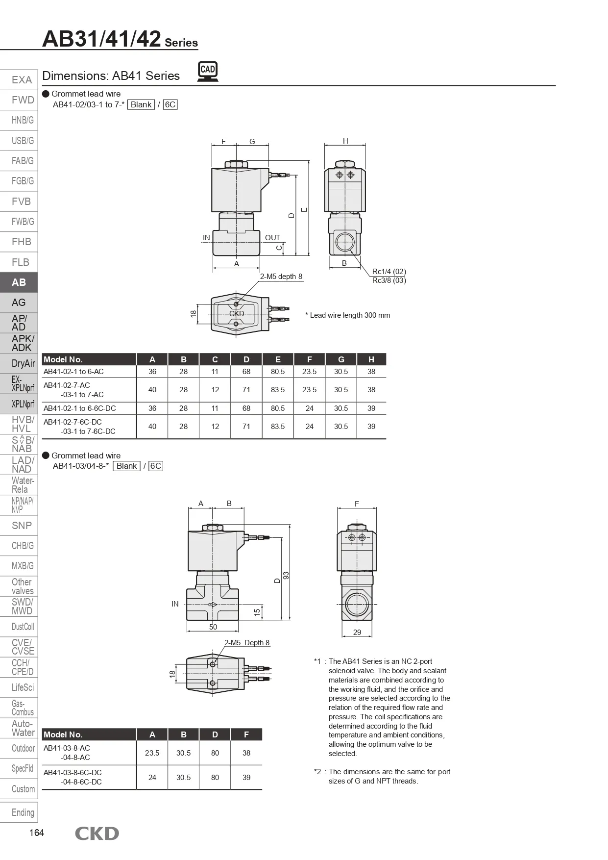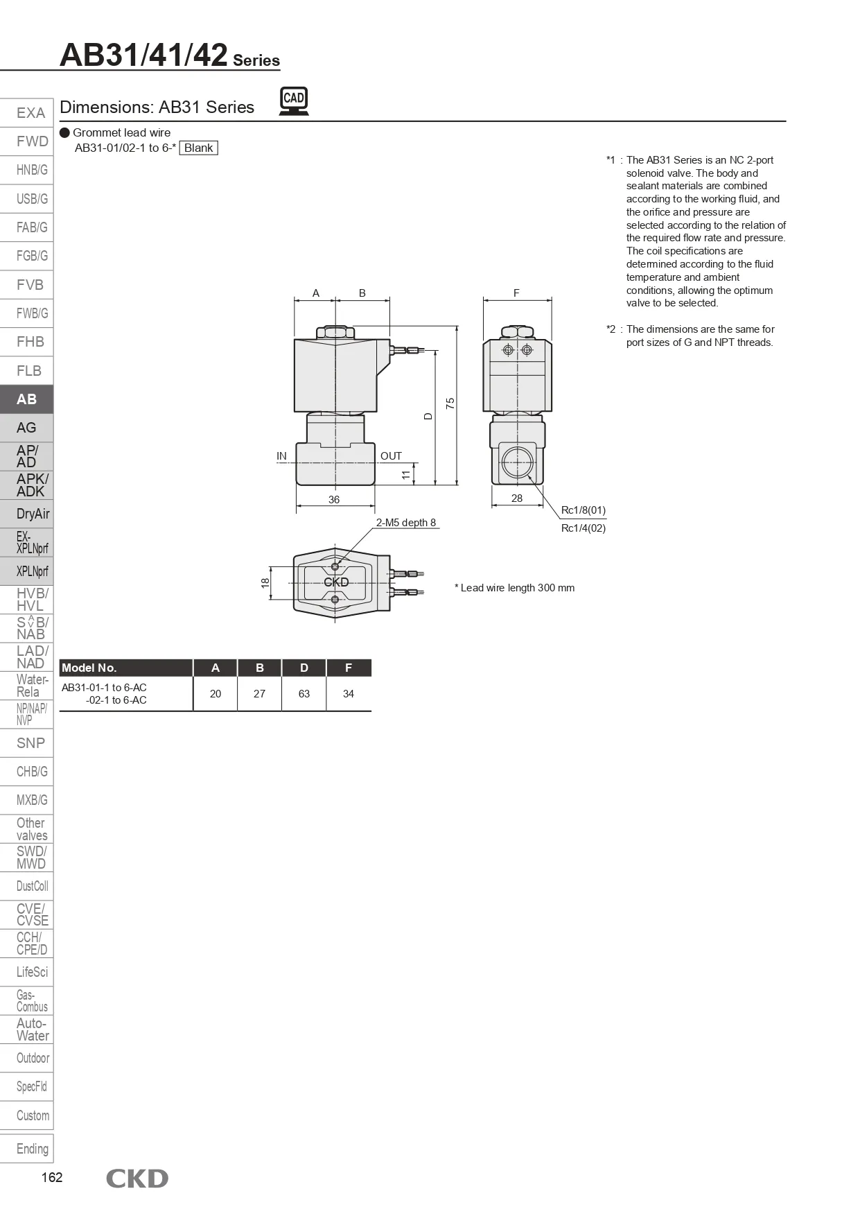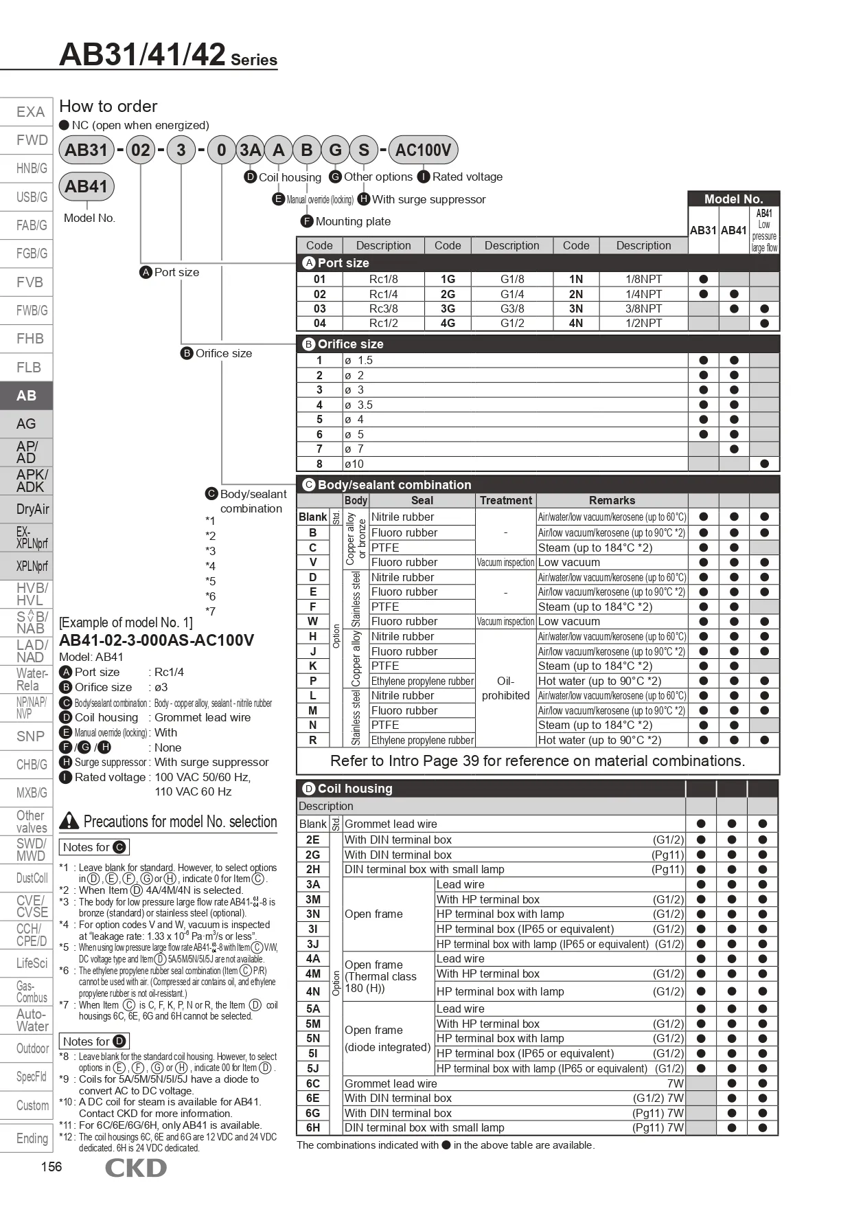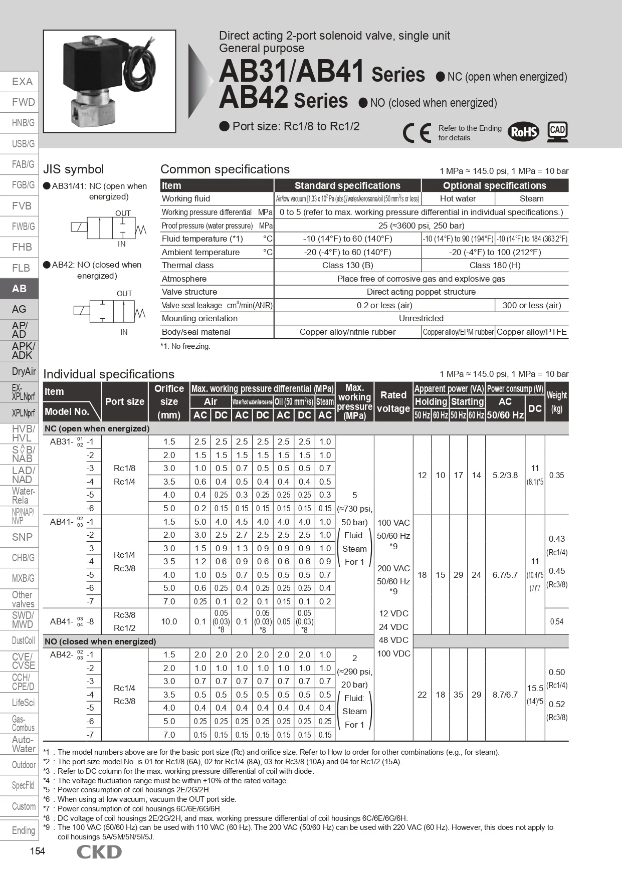 CKD Solenoid Valve – AB41 Series เป็นโซลินอยด์วาล์วแบบ Direct‑acting 2‑port valve ที่ออกแบบมาให้ใช้งานกับ ของไหลหลายประเภท (air, gas, water, light oil) มีตัวเลือกวัสดุ, ขนาด orifice และคอยล์หลากหลาย เหมาะสำหรับงาน boilers, furnaces, process lines และระบบอุตสาหกรรมทั่วไป