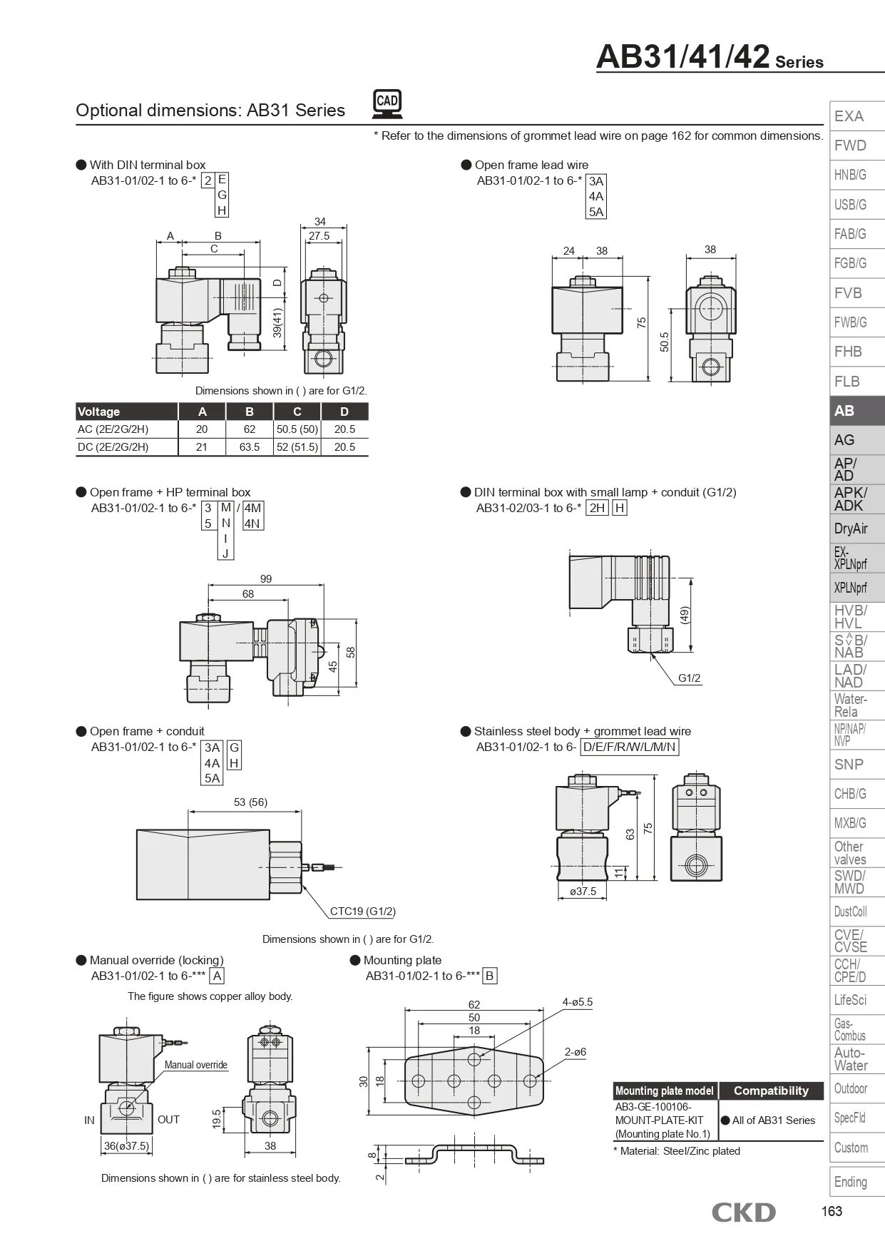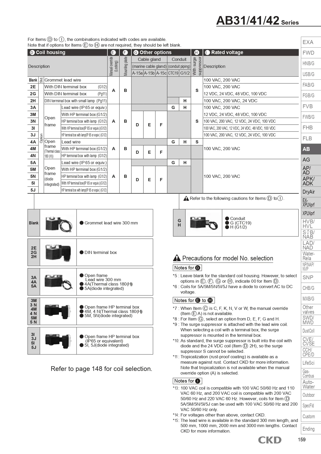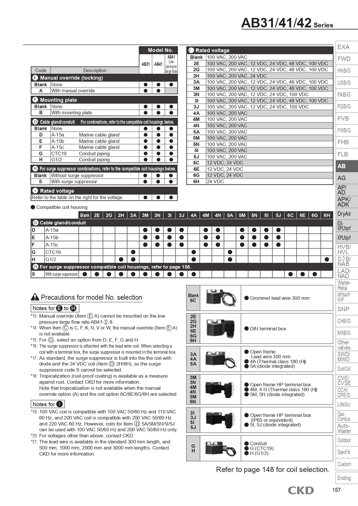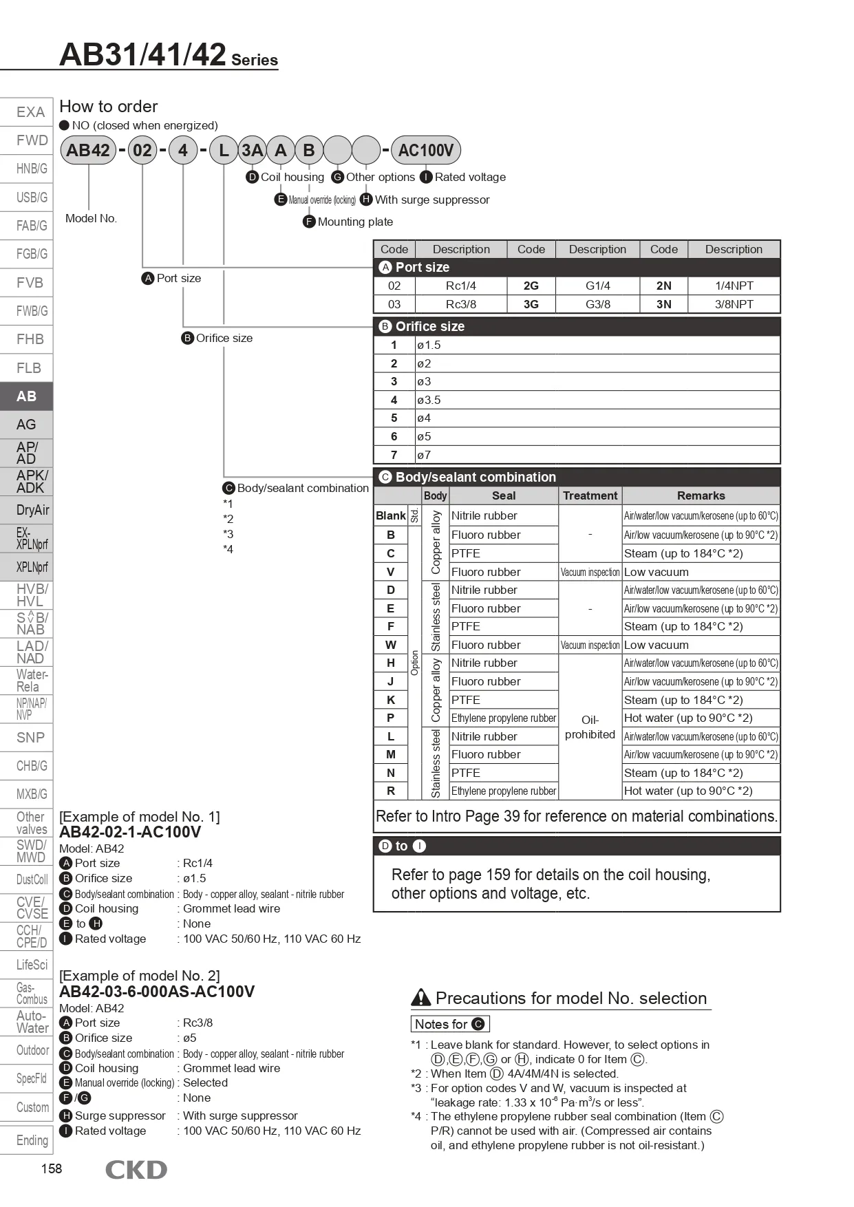 CKD Solenoid Valve – AB41 Series เป็นโซลินอยด์วาล์วแบบ Direct‑acting 2‑port valve ที่ออกแบบมาให้ใช้งานกับ ของไหลหลายประเภท (air, gas, water, light oil) มีตัวเลือกวัสดุ, ขนาด orifice และคอยล์หลากหลาย เหมาะสำหรับงาน boilers, furnaces, process lines และระบบอุตสาหกรรมทั่วไป