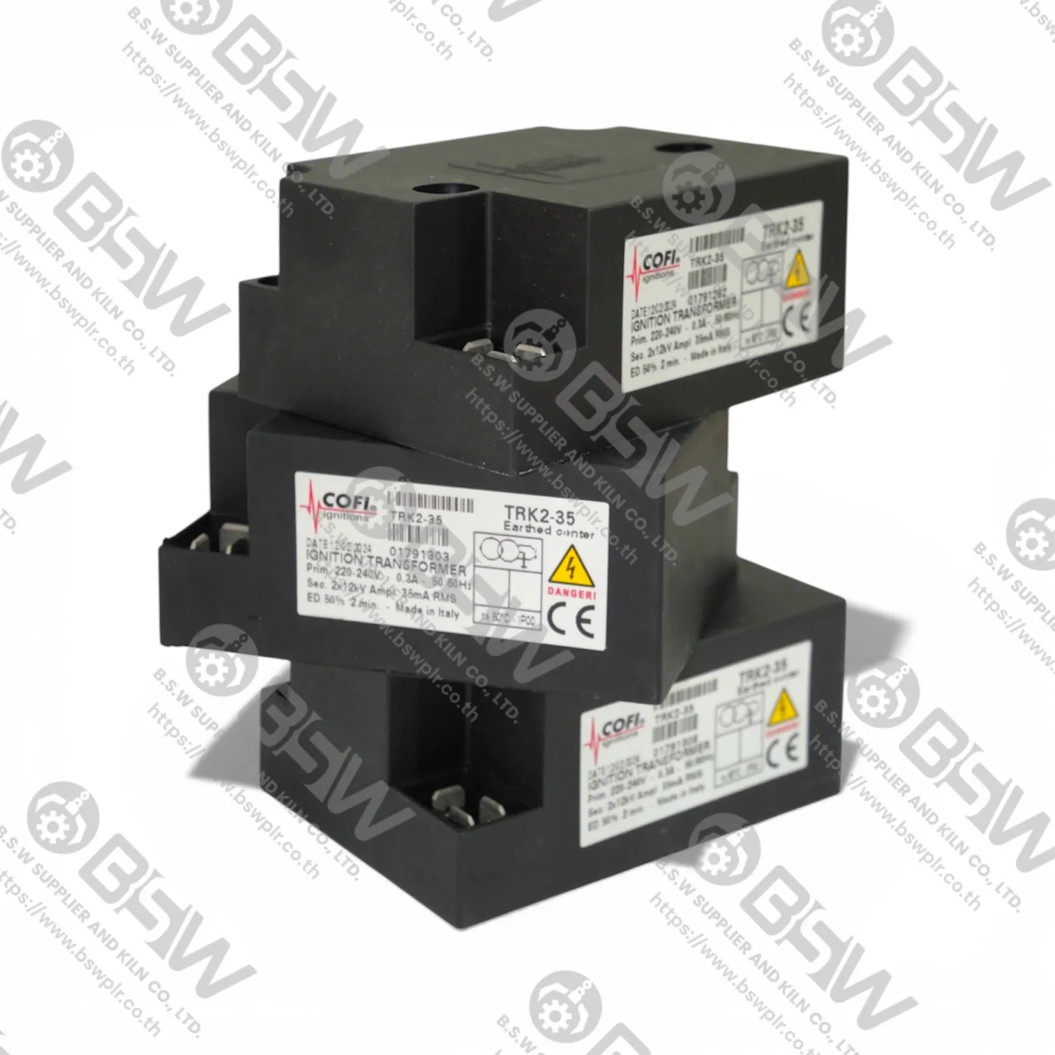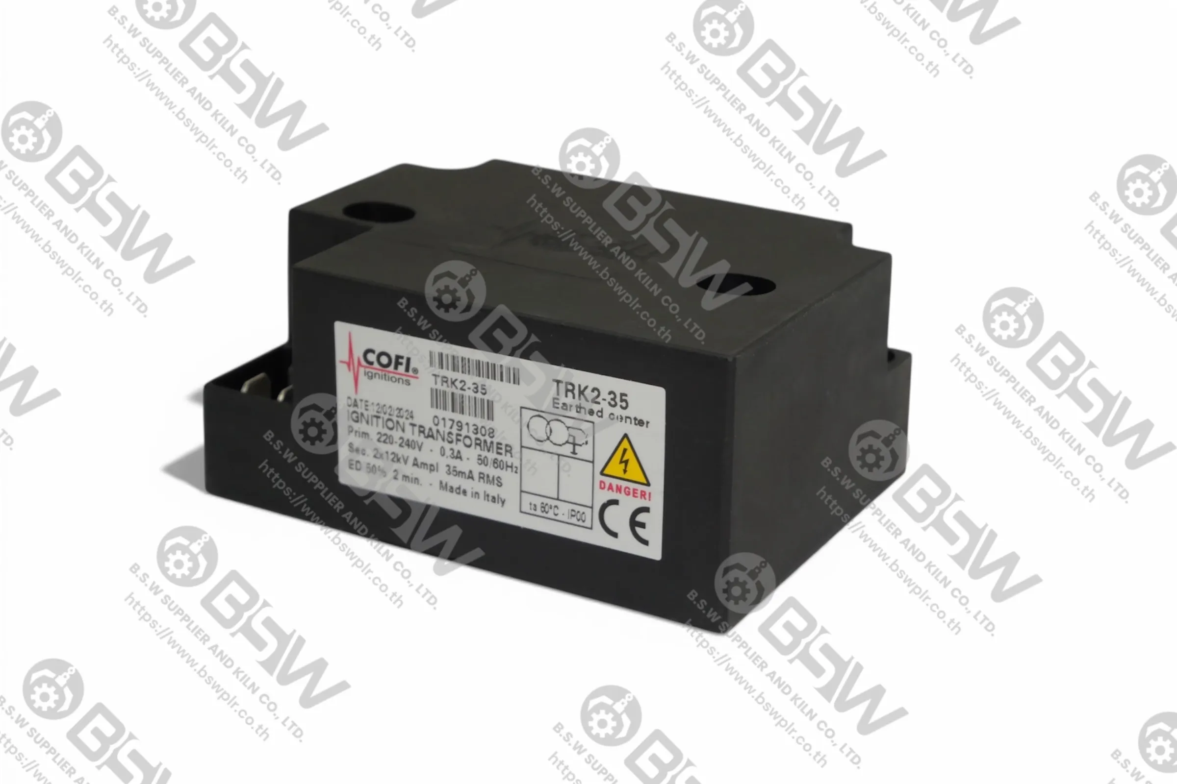COFI TRK Series (Ignition Transformers – Oil & Gas Burner Ignition) เป็นหม้อแปลงจุดระเบิดแบบ Inductive Conventional Transformer ที่ออกแบบมาสำหรับหัวเผาแก๊สและน้ำมัน รวมถึงงานอุตสาหกรรมอื่น ๆ หรับหัวเผาแก๊สและน้ำมัน (Gas & Oil Burners) โดยให้แรงดันสูงและกระแสที่เสถียร
