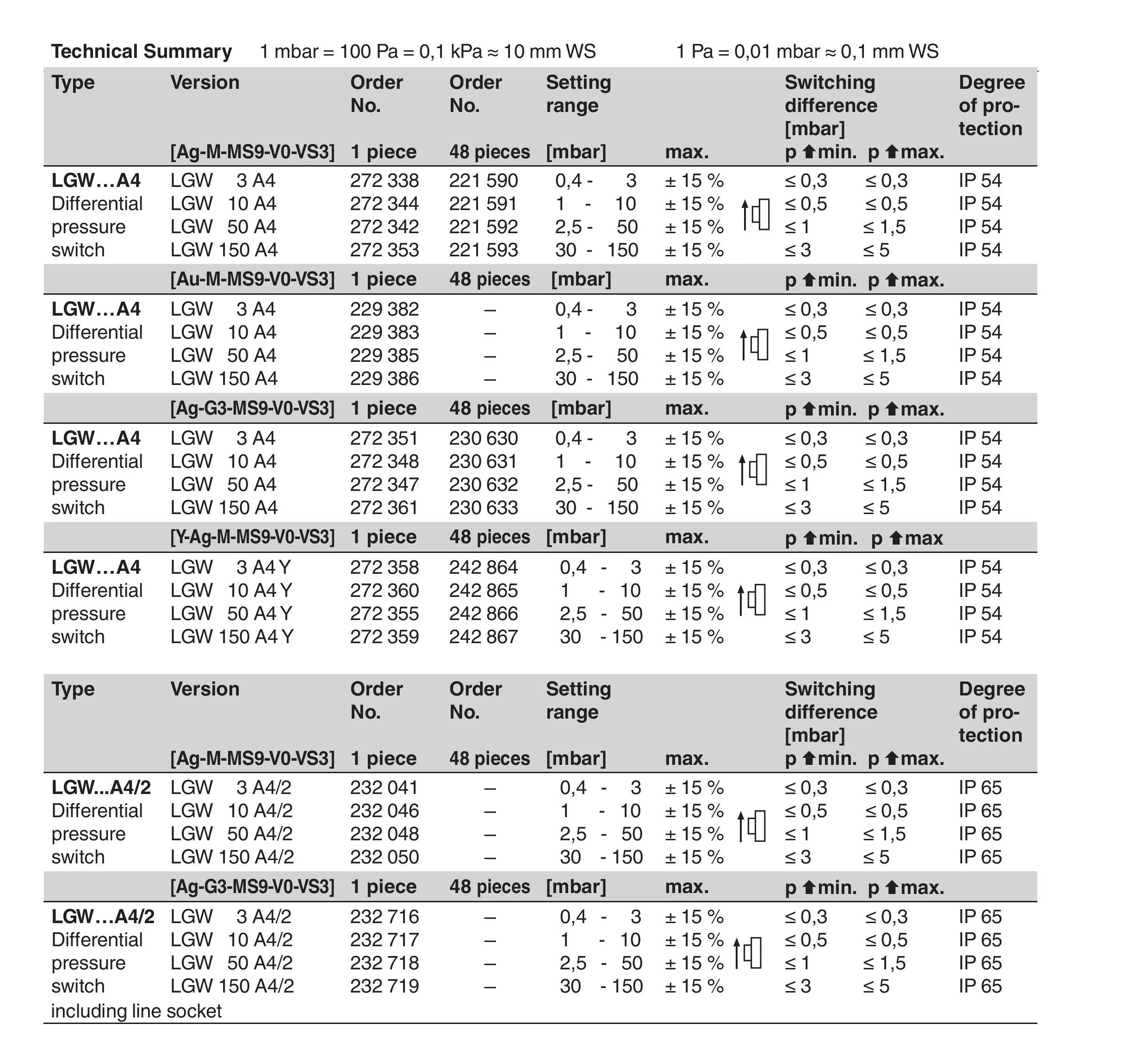 DUNGS Air Pressure Switch – LGW Series (Combustion and Ventilation Systems) เป็น Air Pressure Switch ที่ใช้ตรวจสอบแรงดันอากาศและแก๊สในระบบเผาไหม้และระบายอากาศ เพื่อความปลอดภัยและความเชื่อถือได้ของระบบ โดยมีหลายรุ่นย่อยที่รองรับแรงดันตั้งแต่ 20–5000 Pa และสามารถใช้งานได้ทั้ง Positive, Negative และ Differential Pressure
