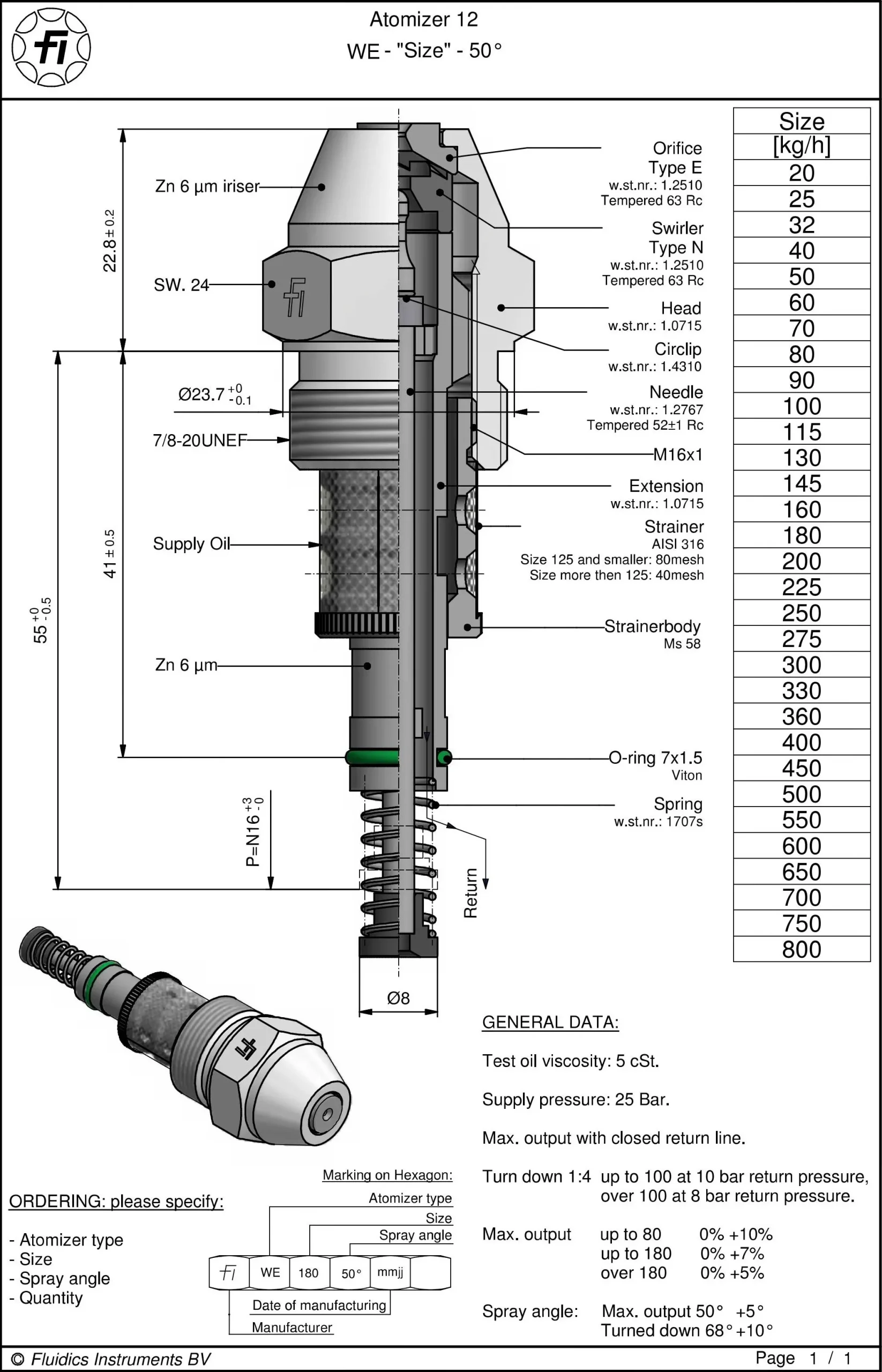 รายละเอียดหลักของ FLUIDICS OIL NOZZLE – WE