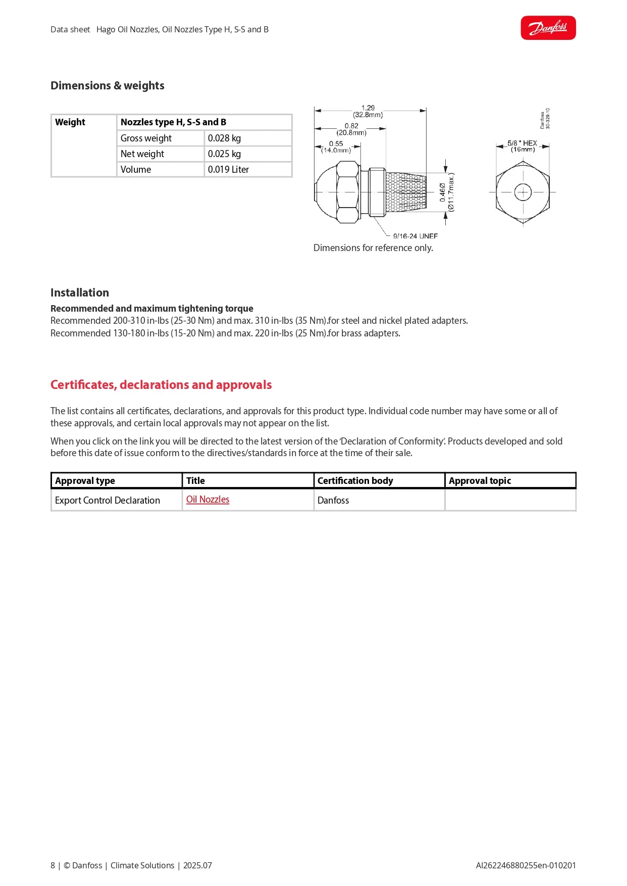 Hago Oil Nozzle – S-S Series เป็นหัวฉีดน้ำมันเชื้อเพลิงสำหรับ Oil Burners ที่ต้องการการกระจายเชื้อเพลิงแบบ Solid Cone (S) โดยรุ่น S‑S จะเป็น Solid Cone – Stainless Steel ซึ่งออกแบบมาเพื่อความทนทานสูง ใช้ได้กับ Light Oil, Kerosene และ Biofuel เหมาะสำหรับ Boilers, Furnaces และ Industrial Burners ที่ต้องการการเผาไหม้สม่ำเสมอ