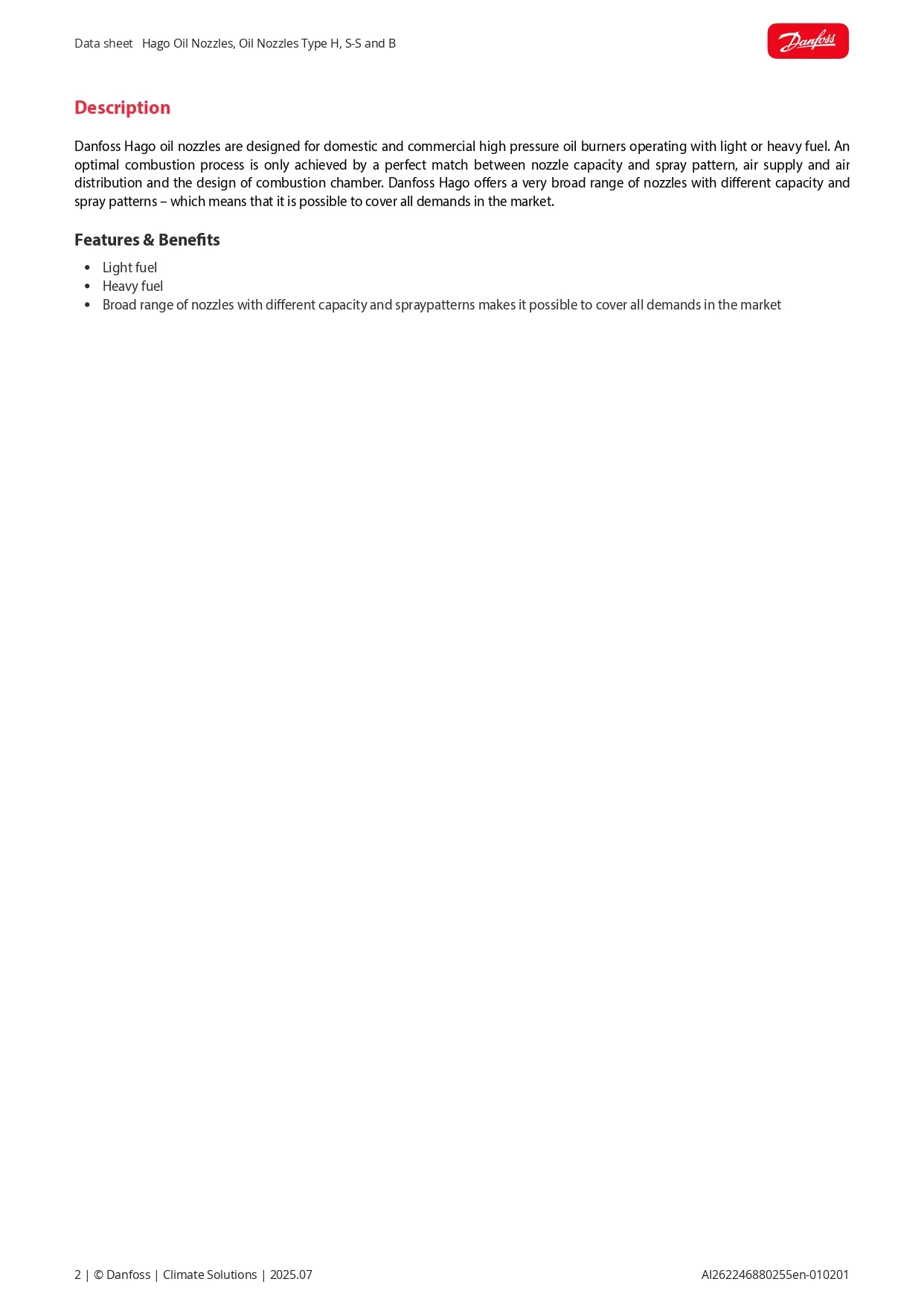 Hago Oil Nozzle – S-S Series เป็นหัวฉีดน้ำมันเชื้อเพลิงสำหรับ Oil Burners ที่ต้องการการกระจายเชื้อเพลิงแบบ Solid Cone (S) โดยรุ่น S‑S จะเป็น Solid Cone – Stainless Steel ซึ่งออกแบบมาเพื่อความทนทานสูง ใช้ได้กับ Light Oil, Kerosene และ Biofuel เหมาะสำหรับ Boilers, Furnaces และ Industrial Burners ที่ต้องการการเผาไหม้สม่ำเสมอ