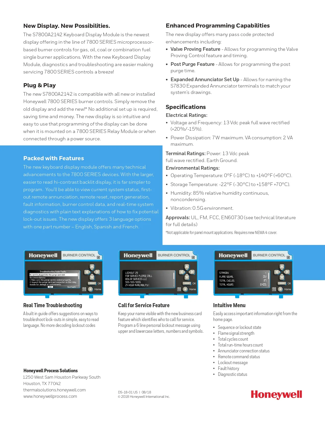 Honeywell Remote Reset Module – S Series เป็นโมดูลแสดงผลและตั้งค่าที่ใช้กับ 7800 Series Burner Controls มีหน้าจอ LCD 4 บรรทัด สำหรับแสดงสถานะ, fault codes และการตั้งค่าพารามิเตอร์ เพื่อให้ผู้ใช้งานสามารถ รีเซ็ตระบบจากระยะไกล หลังจากเกิด lockout หรือ fault โดยไม่จำเป็นต้องเข้าถึงตัวควบคุมหลักโดยตรง เพิ่มความสะดวกและความปลอดภัยในการใช้งานระบบหัวเผาอุตสาหกรรม