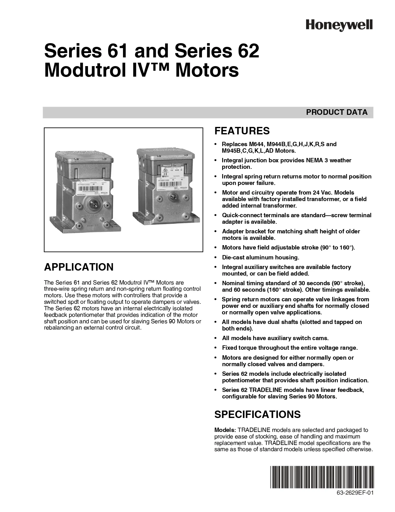 Honeywell Modutrol IV Motors – 62 Series เป็นมอเตอร์ควบคุมสำหรับ dampers และ valves ที่รองรับทั้ง spring return และ non‑spring return มี housing แบบ NEMA 3 weather‑protected, ปรับ stroke ได้ และติดตั้งง่าย เหมาะสำหรับ HVAC, boilers และ furnaces ที่ต้องการความปลอดภัยและความยืดหยุ่นสูง