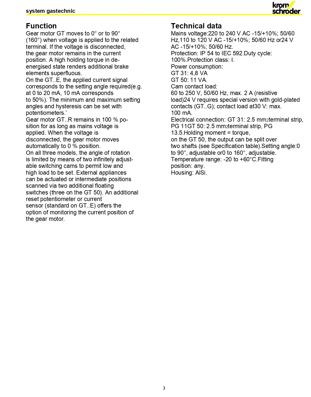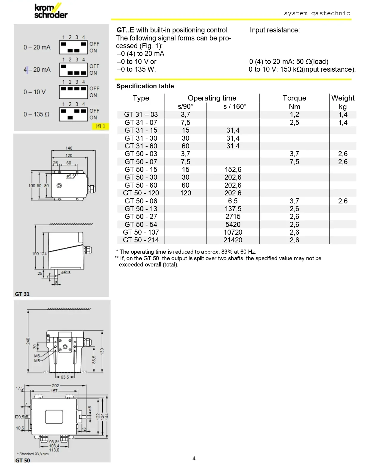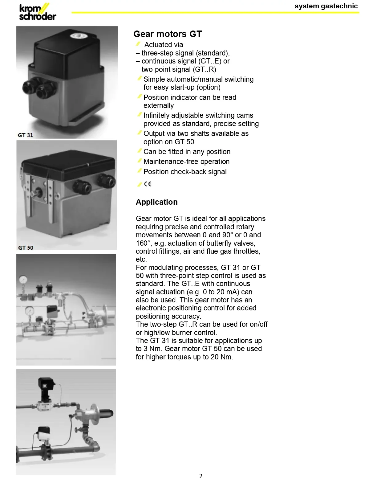 Kromschröder Damper Actuator – GT Series เป็น Damper Actuator สำหรับควบคุมการเปิด–ปิดแดมเปอร์, butterfly valves, air/gas throttles และ control fittings ในระบบหัวเผาอุตสาหกรรม ใช้งานได้ทั้งแบบ สามจังหวะ (three‑point step control), สองจังหวะ (two‑point) และ สัญญาณต่อเนื่อง (continuous signal 0–20 mA) เหมาะสำหรับ Boilers, Furnaces, Kilns และ Combustion Systems ที่ต้องการการควบคุมการไหลของอากาศและก๊าซ