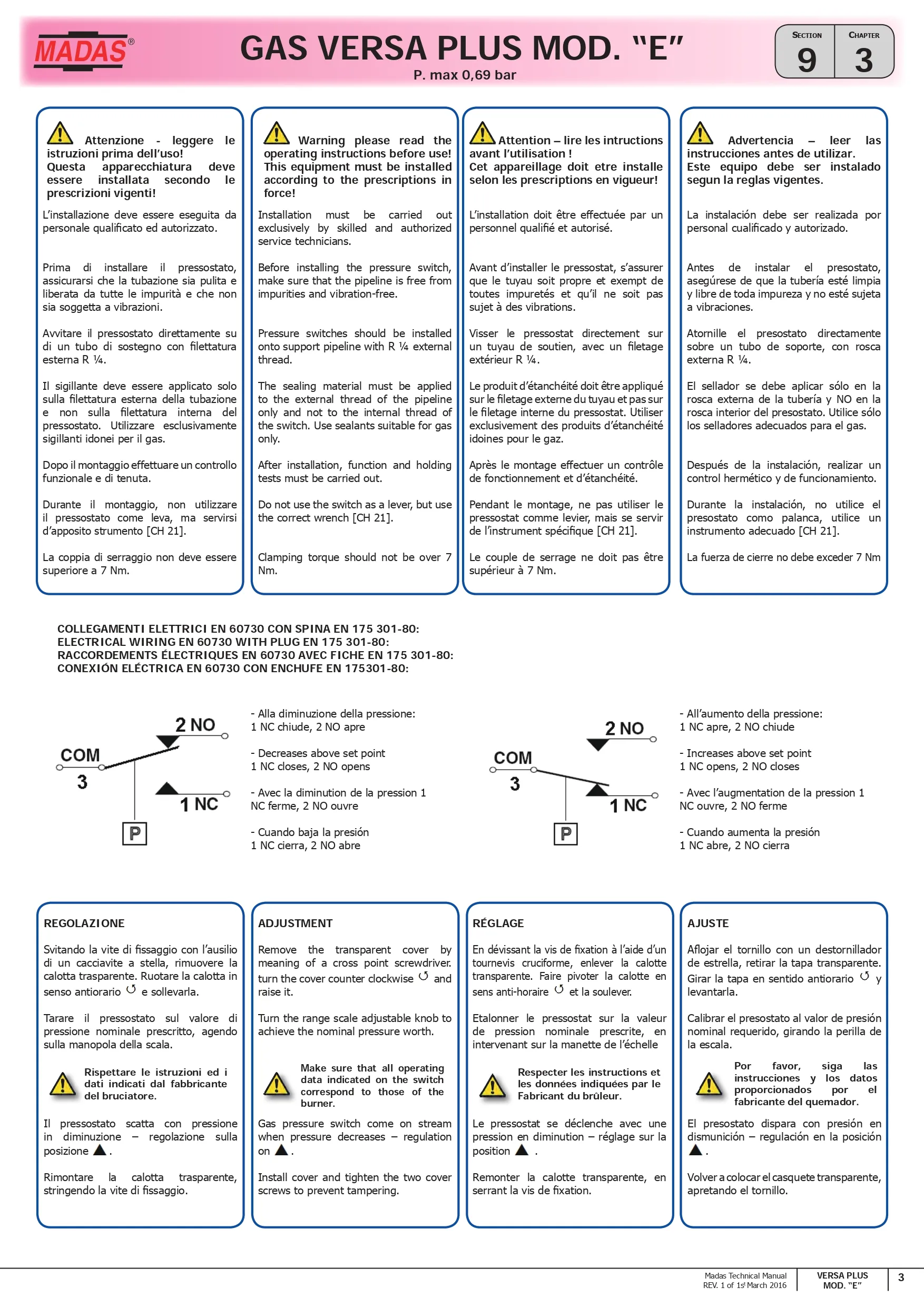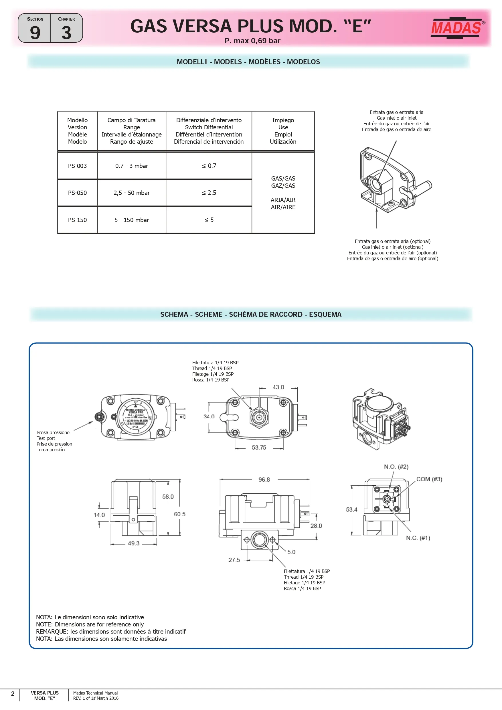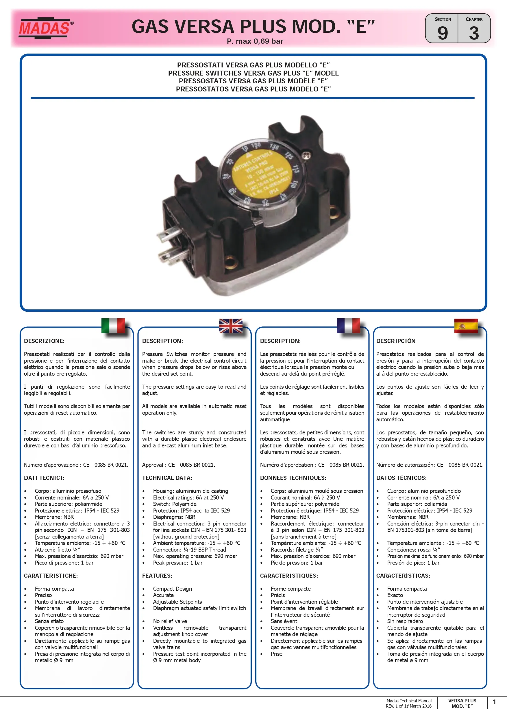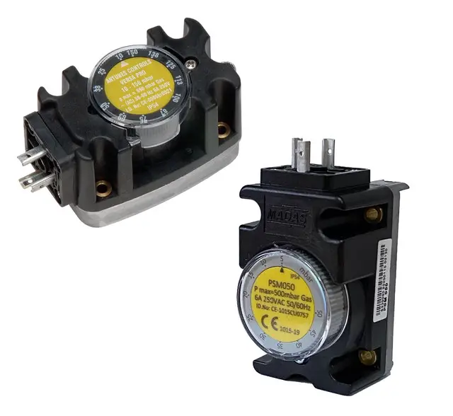 Madas Pressure Switch – PSM Series เป็นอุปกรณ์ตรวจสอบแรงดันสำหรับ ก๊าซธรรมชาติ (NG), LPG และอากาศ ใช้ควบคุมแรงดันในระบบการเผาไหม้ เช่น burners, boilers, furnaces และ water heaters เมื่อแรงดันสูงหรือต่ำเกินค่าที่ตั้งไว้ จะสั่ง เปิด/ปิดวงจรไฟฟ้า เพื่อความปลอดภัย