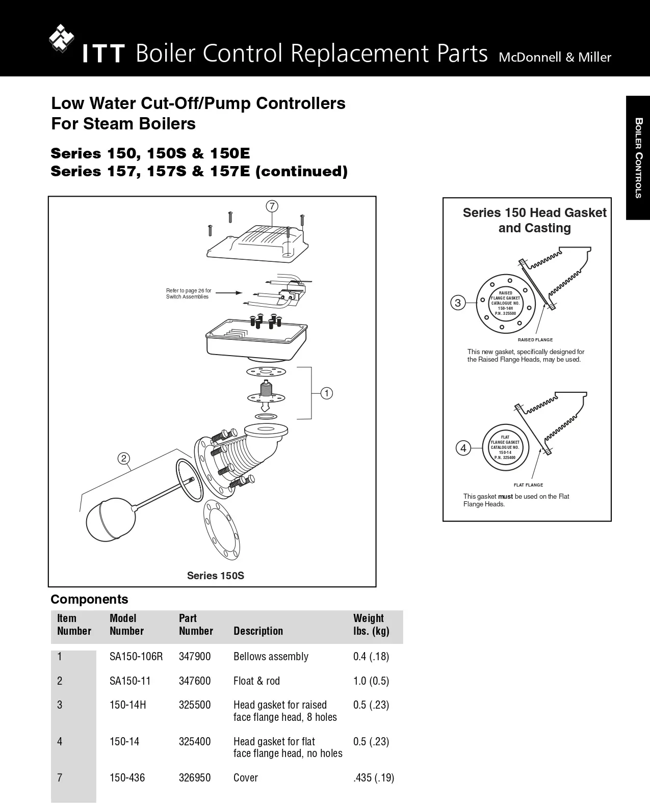 McDonnell & Miller Pump Controller Spare Part (Bellows Assembly) – SA150 Series เป็นอะไหล่สำคัญของ Low Water Cut‑Off และ Pump Controllers ใช้สำหรับตรวจจับการเปลี่ยนแปลงระดับน้ำในหม้อไอน้ำ โดยทำงานร่วมกับ float mechanism เพื่อสั่งงานสวิตช์ควบคุมปั๊มน้ำและระบบตัดการทำงานเมื่อระดับน้ำต่ำ