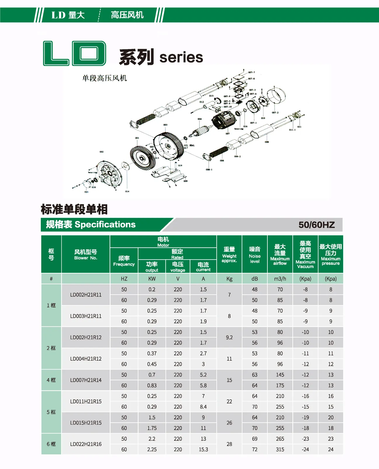 OuGuan LD-Series Vacuum Pump Side Channel Blower