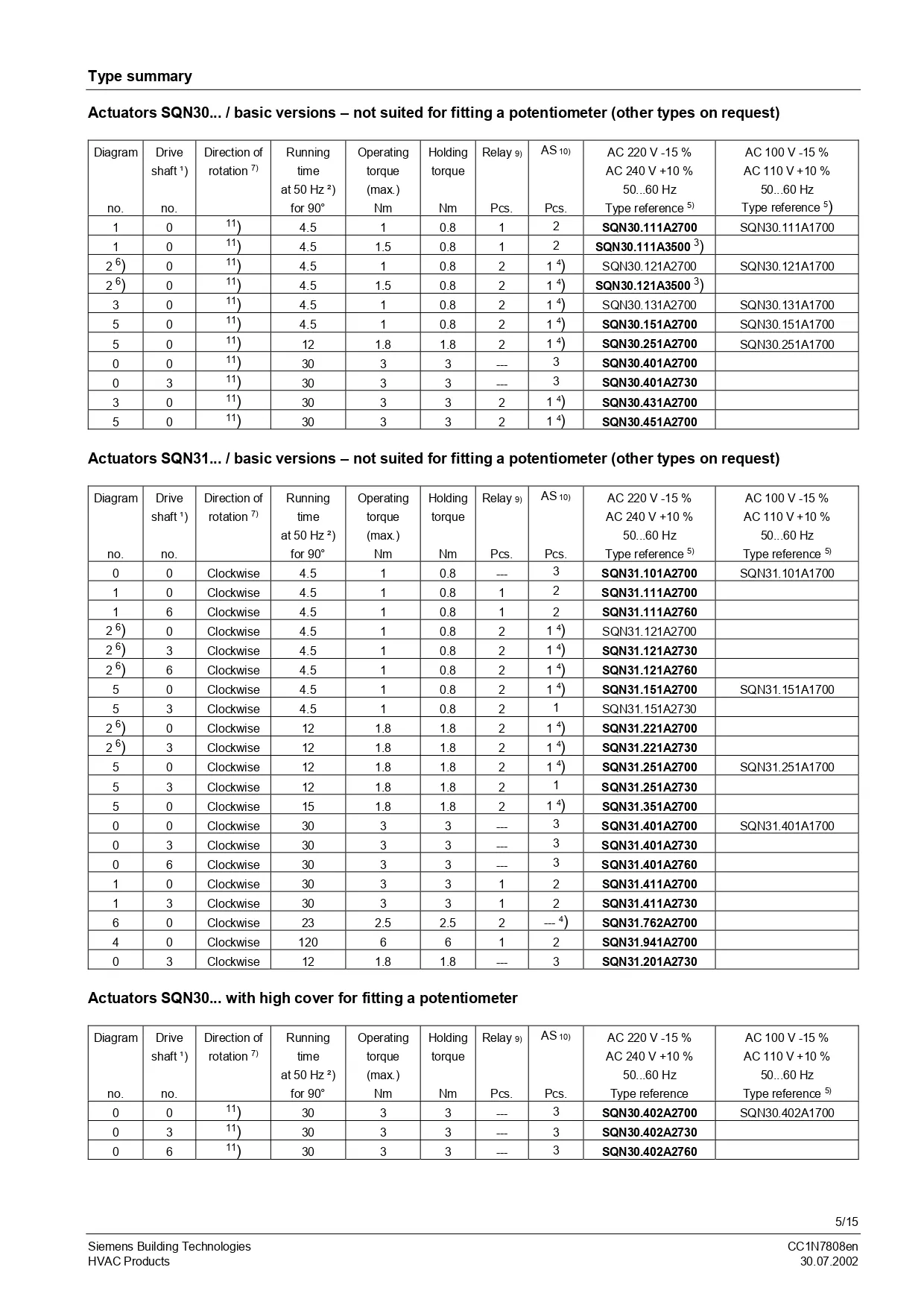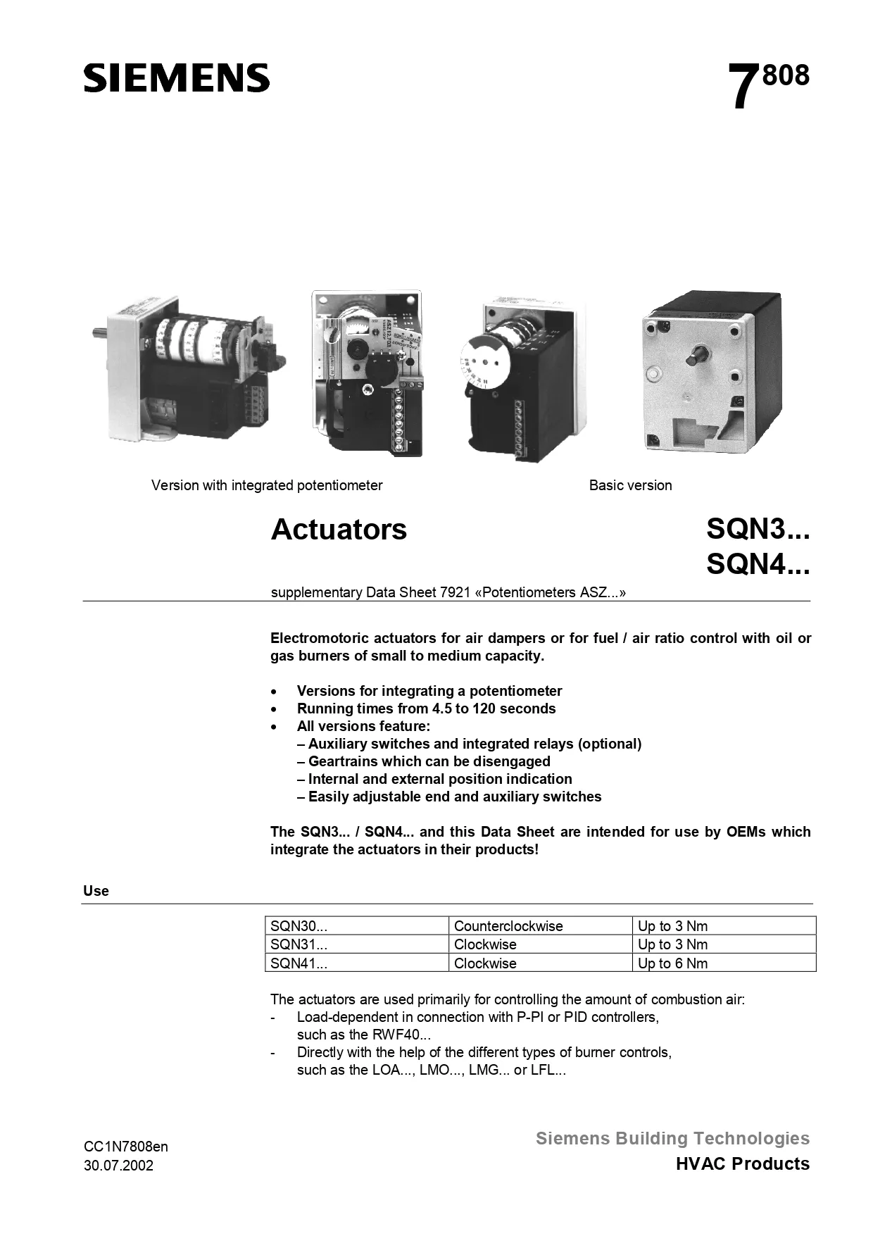 Siemens Actuators – SQN3 Series