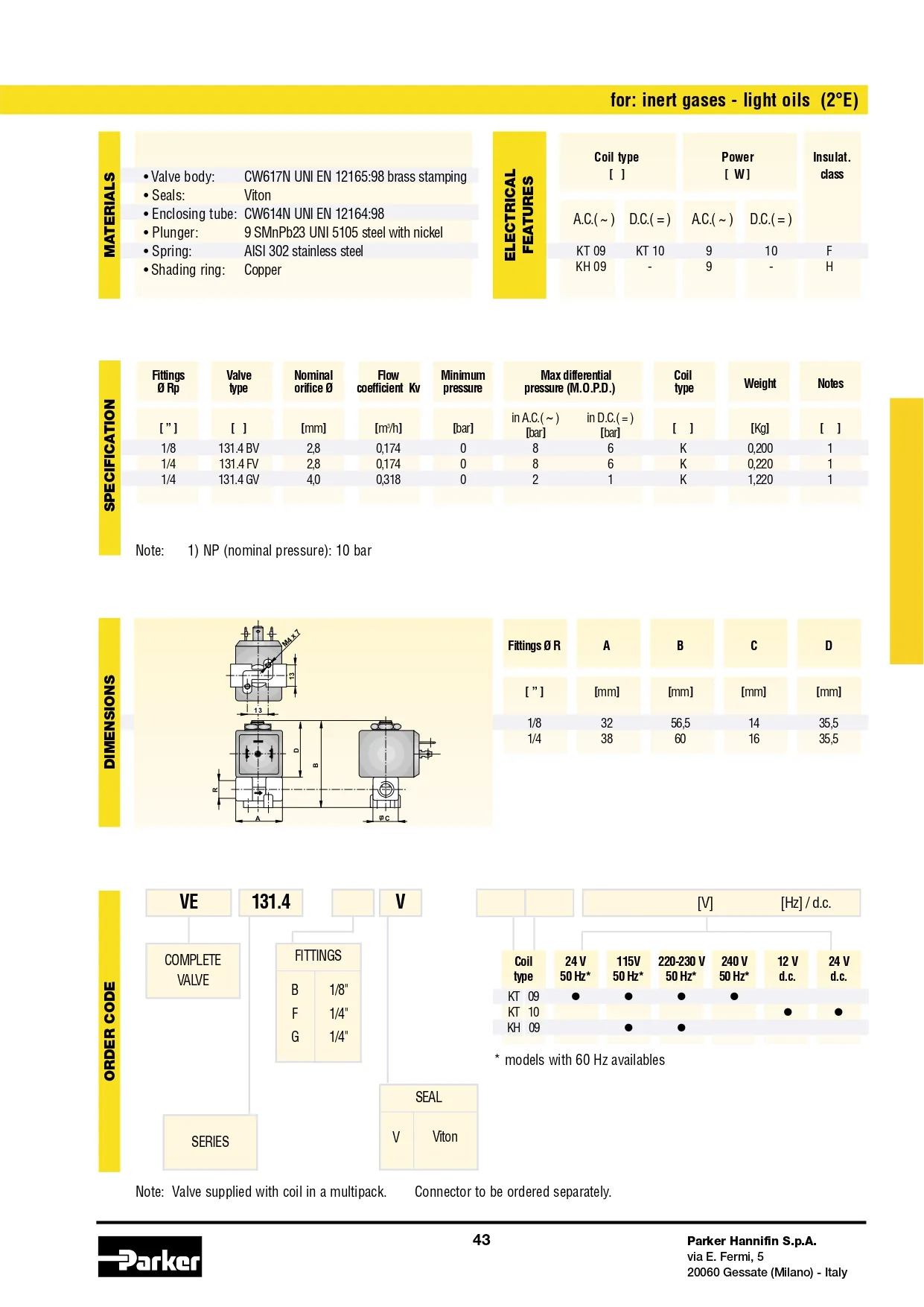 - ชนิดวาล์ว: 2/2 ทาง, Direct Operated, Normally Closed