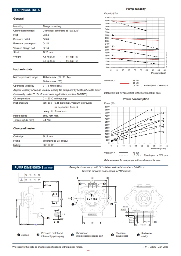 - อุณหภูมิน้ำมันสูงสุดภายในปั๊ม 0 – 150 °C