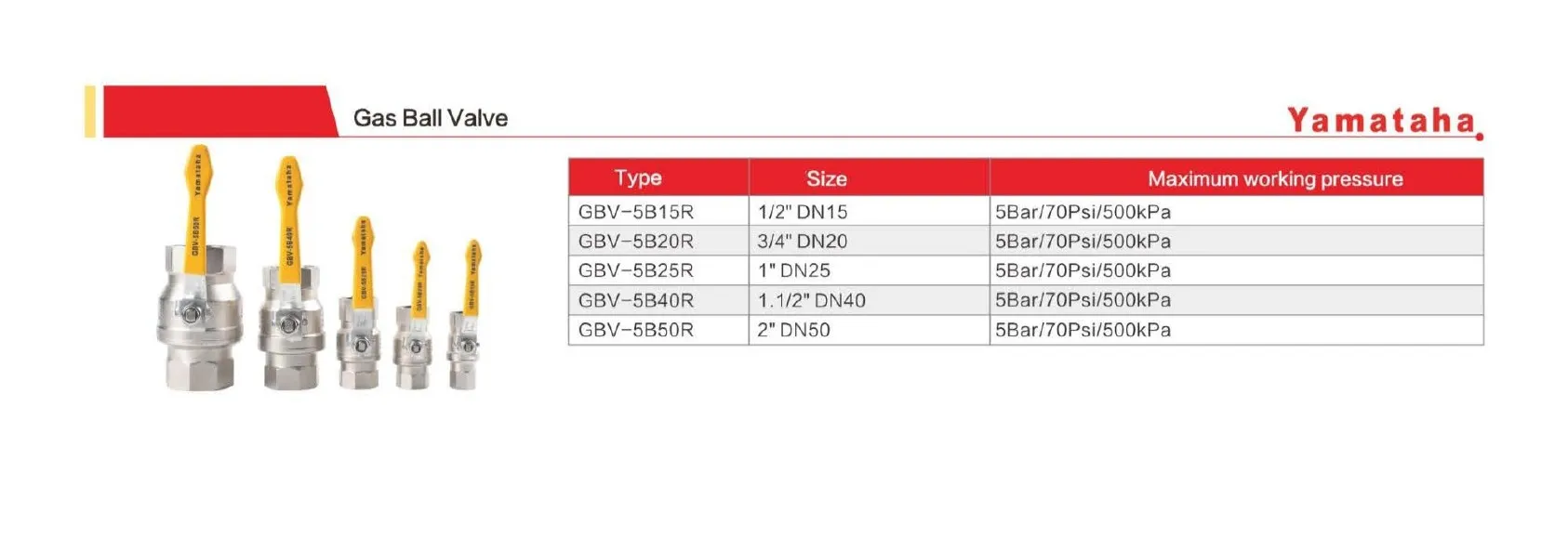 รายละเอียดหลักของ YAMATAHA Gas Ball Valve