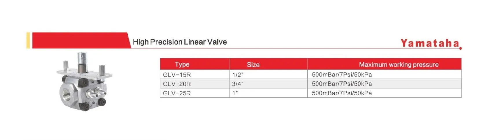 YAMATAHA – High Precision Linear Valve (GLV Series) เป็นวาล์วควบคุมการไหลแก๊สแบบ Linear ที่ให้ความแม่นยำสูง รองรับแรงดันถึง 500 mbar และใช้งานได้กับ NG, LPG และ Air เหมาะสำหรับ Boilers, Furnaces และ Heating Systems ที่ต้องการการเผาไหม้เสถียรและควบคุมเชื้อเพลิงอย่างละเอียด วาล์วแก๊สแบบ Linear Control Valve ที่ออกแบบมาเพื่อควบคุมการไหลของแก๊สอย่างละเอียดและแม่นยำ เหมาะสำหรับระบบหัวเผาอุตสาหกรรม, หม้อไอน้ำ และเตาเผาที่ต้องการการปรับอัตราการไหลของแก๊สอย่างต่อเนื่องและเสถียร